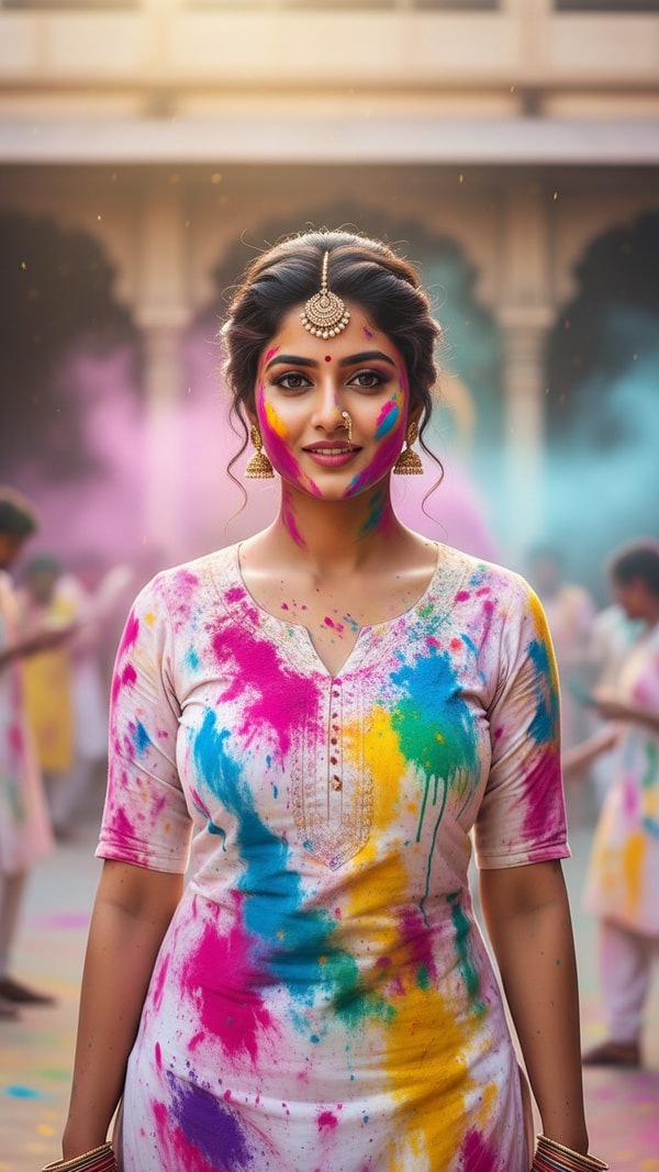 Holi FestivalIndian CelebrationFestival PhotographyAI TemplateWhite Kurta HoliWhiteKurta